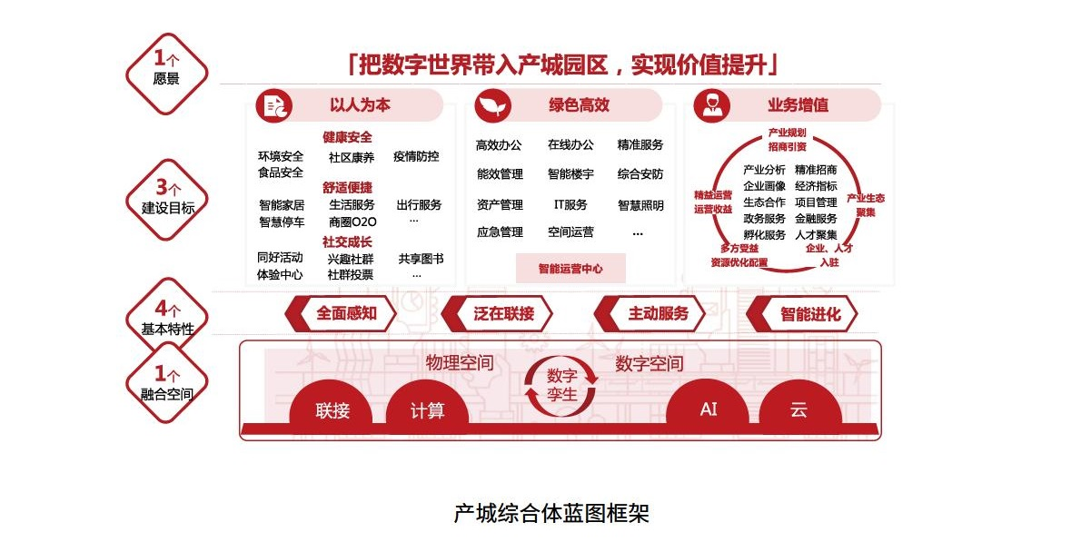 智慧園區藍圖框架,應用于指導產城綜合體園區的智慧化規劃與建設。